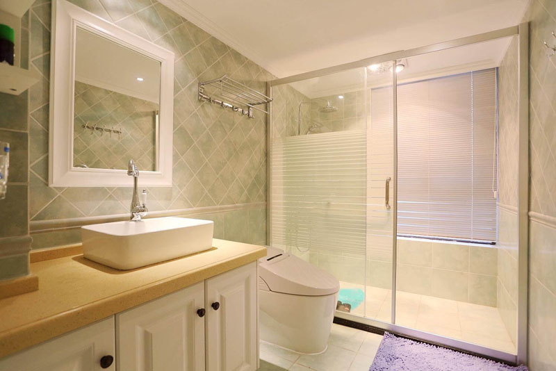 卫生间也是 做到干湿分区,淋浴区保证和外面干区隔开的同时又保证淋浴空间的足够空间。防水吊顶免去集成吊顶的冰冷,让卫生间都能高档起来。