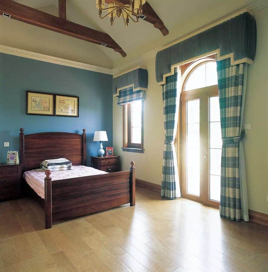 设计师在配色中加入深木色家具,让空间有份不一样的厚重气息,北非的沙漠和地中海的蓝天白云结合。